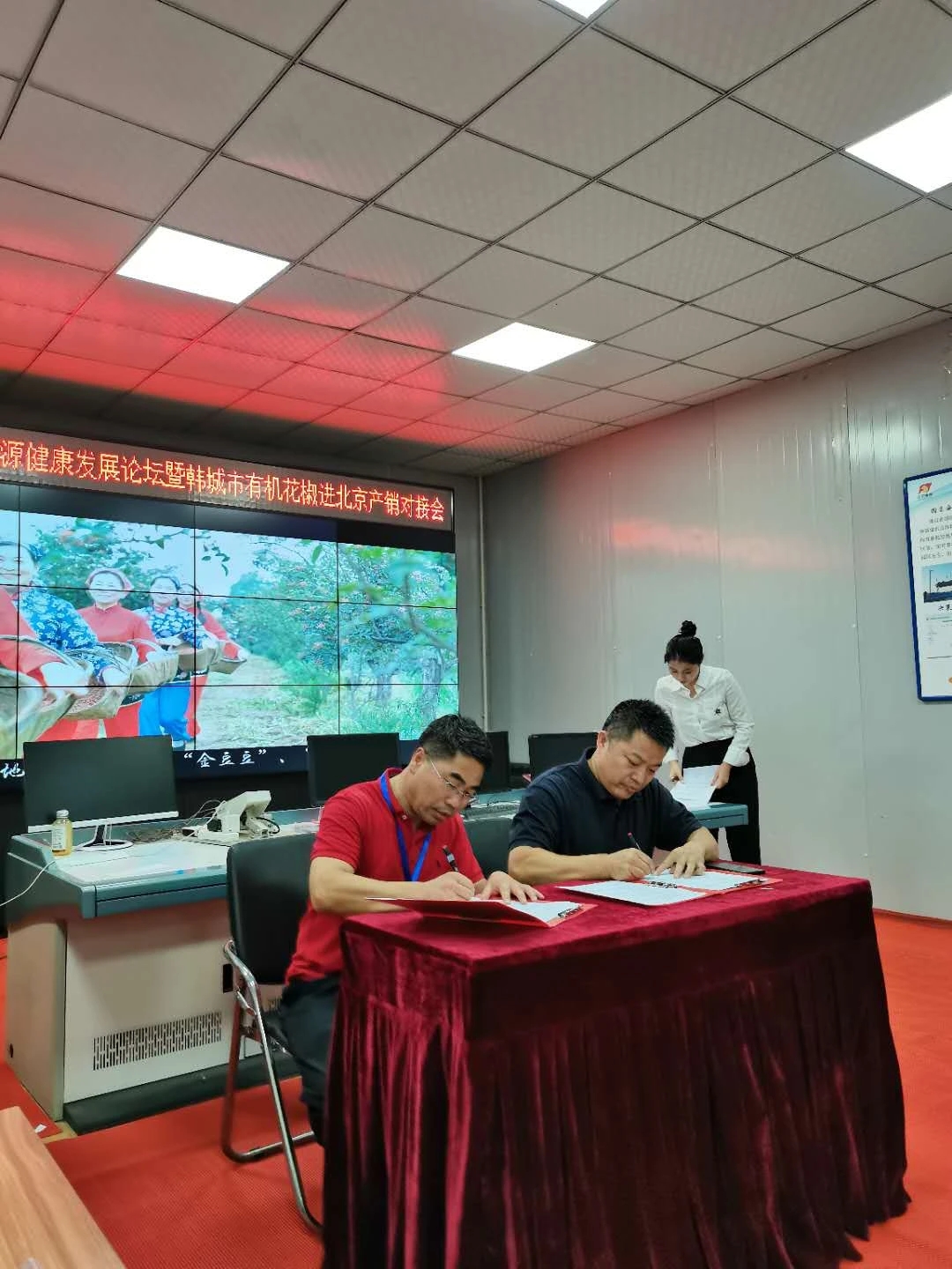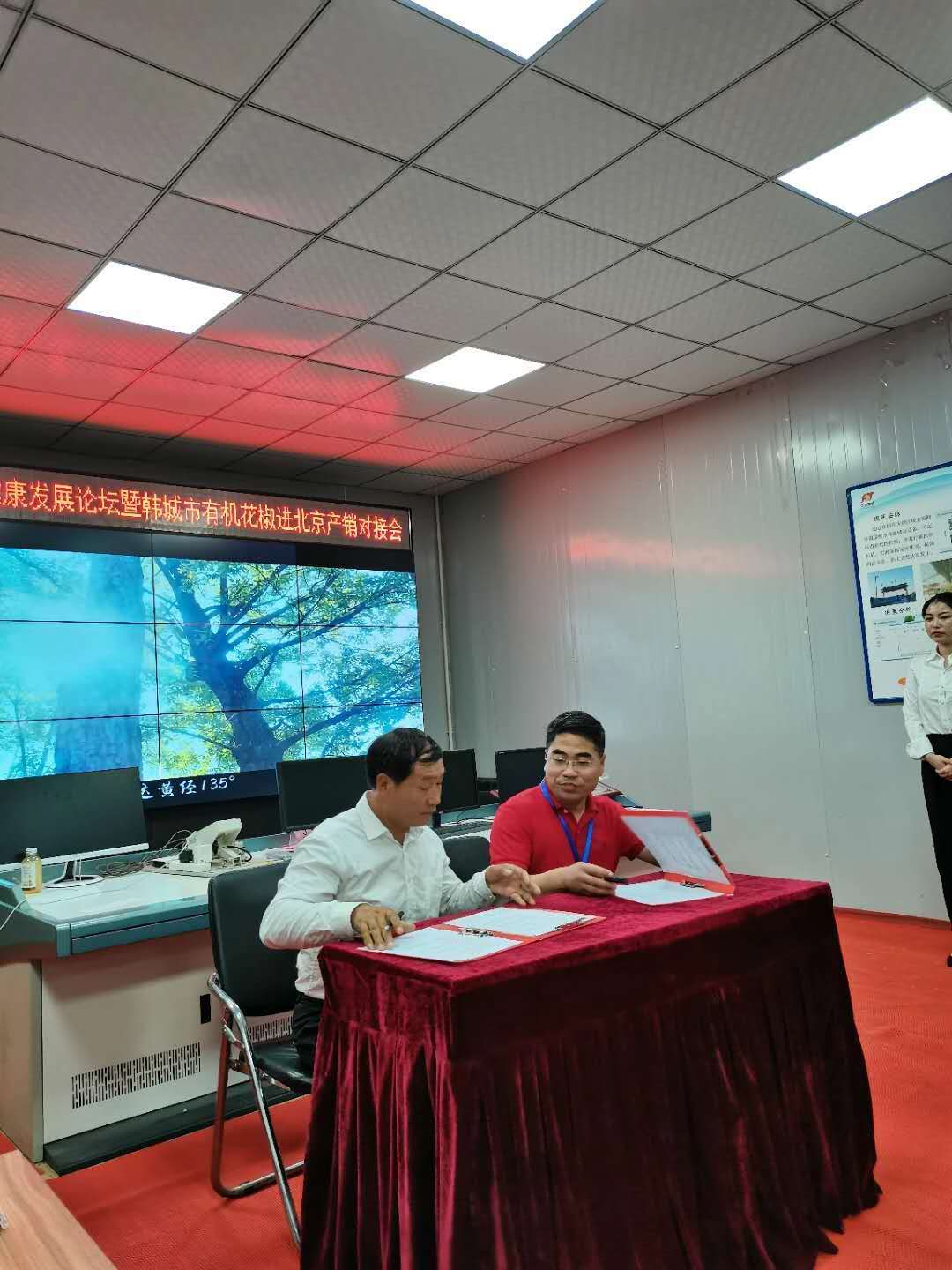 會(huì)上,北京富通大潮來(lái)農(nóng)業(yè)發(fā)展有限公司亓德明與韓城市孟一溝花椒核桃專業(yè)合作社、和思家進(jìn)行簽約儀式。北京農(nóng)科尚品農(nóng)業(yè)科技集團(tuán)有限公司與陜西省韓城市孟一溝花椒核桃專業(yè)合作社簽訂有機(jī)大紅袍花椒系列產(chǎn)品采購(gòu)協(xié)議。