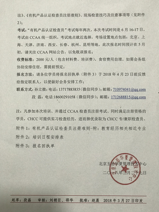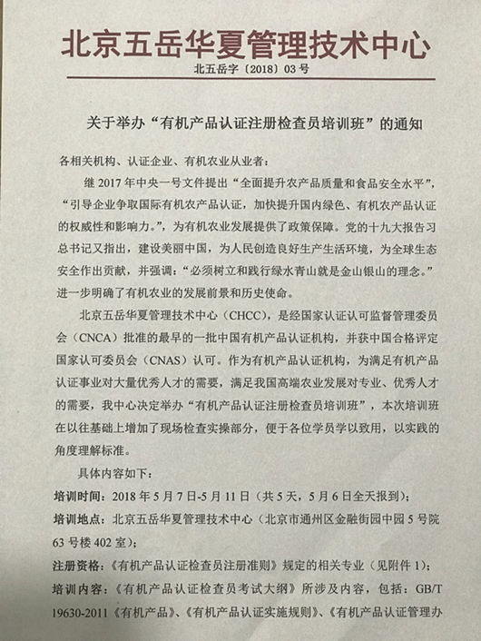 CHCC有機產品認證示范區專題培訓會