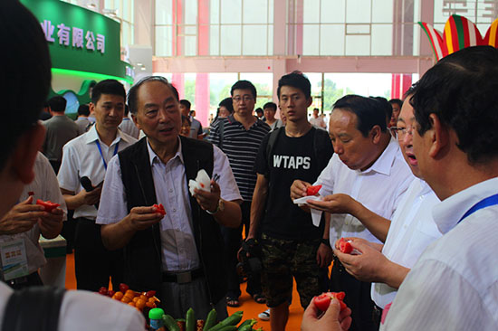 國務院參事劉堅、承德市副市長吳清海等在CHC獲證企業展臺前品嘗有機蔬菜