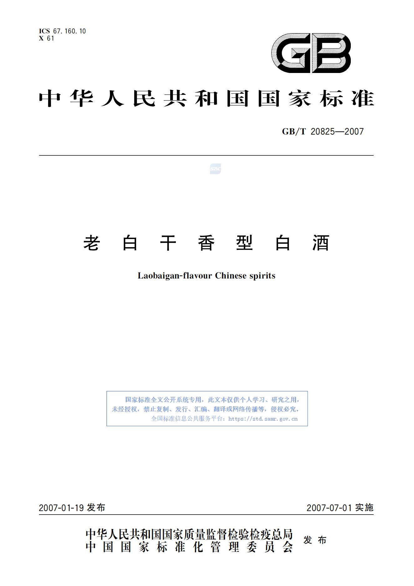 老 白 干 香 型 白 酒 GB/T 20825—2007