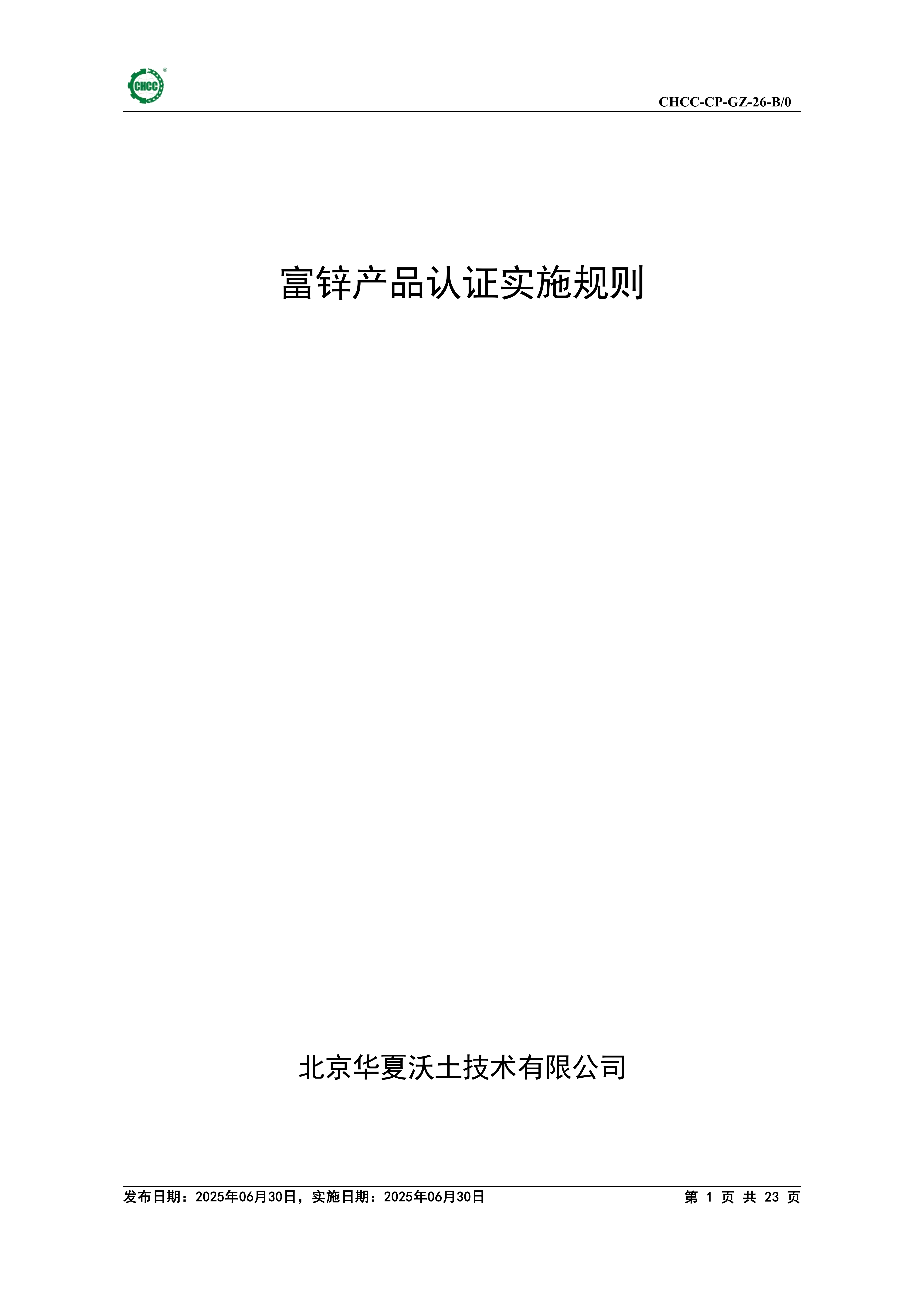 富鋅產(chǎn)品認(rèn)證實(shí)施規(guī)則CHCC-CP-GZ-26-B0