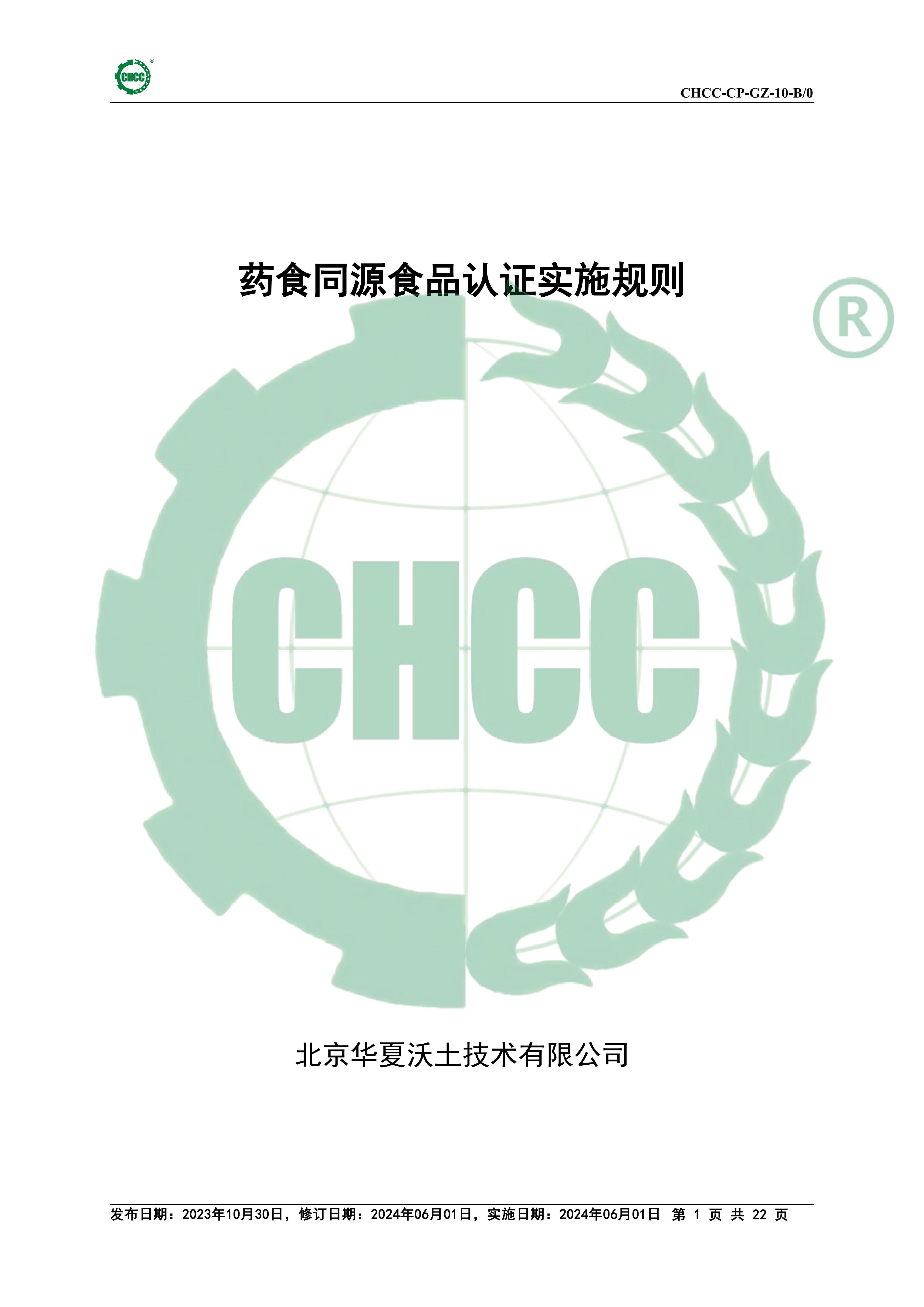 藥食同源食品認證實施規則CHCC-CP-GZ-10-B0